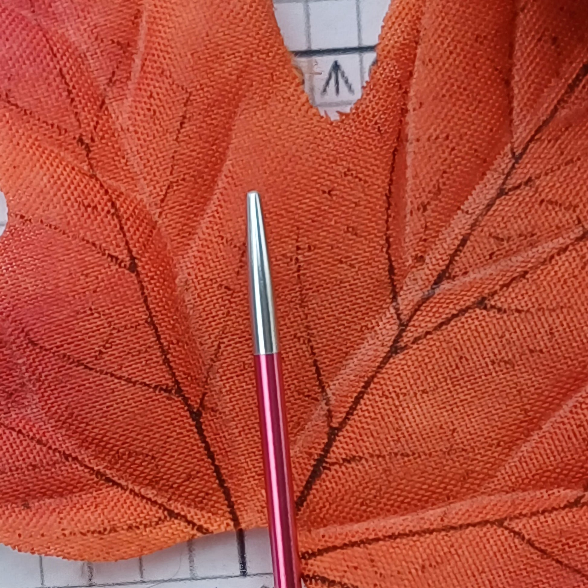 Leichte Metallnadeln aus hochwertigem Leichtmetall. Die Nadeln haben eine rote Farbe mit einer silbernen Spitze. Die Nadeln liegen sehr leicht in der Hand und fassen sich warm und angenehm an. Die Nadelstärke ist auf der Nadel mit Laser eingebrannt und greifen sich, nach Angaben des Herstellers, niemals ab.