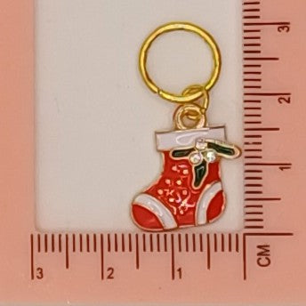 Die Maschenmarkierer, mit fünf unterschiedlichen Wintermotiven, befinden sich in einer kleinen, roten, runden Dose mit Schraubverschluss und roter Filzeinlage. So bleiben die Maschenmarkierer geschützt.